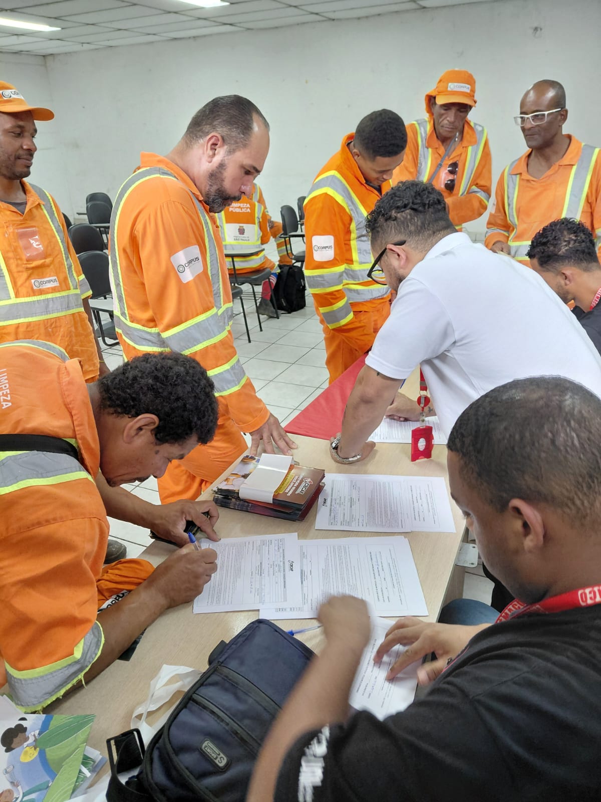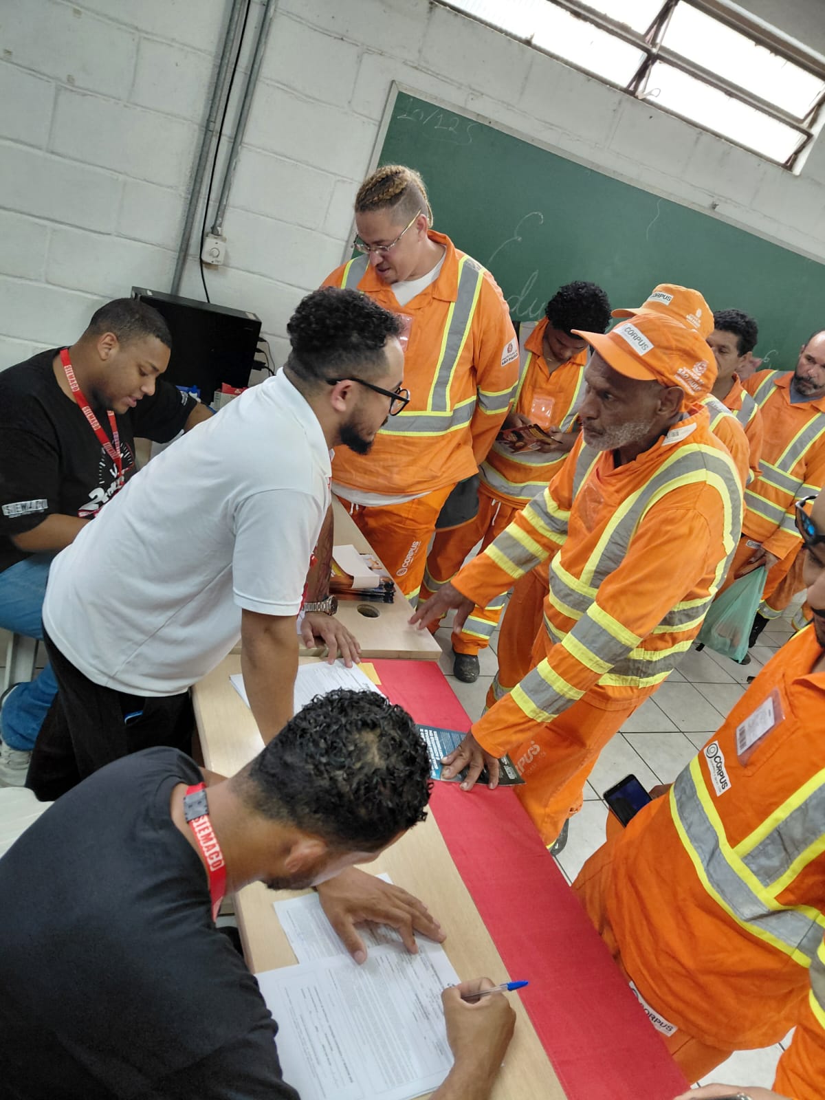 Todo mês de janeiro, antes do início das aulas, o professor Willian Santos, do CECAF, percorre as garagens da Corpus para divulgar o programa de Educação Continuada e os cursos profissionalizantes, conversar com os trabalhadores e esclarecer dúvidas. Já durante a abordagem, ele preenche as fichas de inscrição daqueles que demonstram interesse em voltar a estudar, facilitando o acesso imediato às turmas.