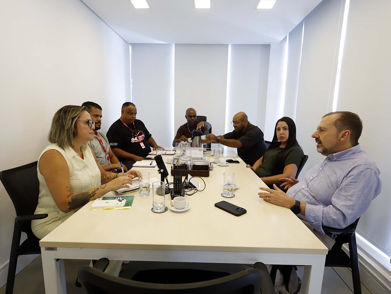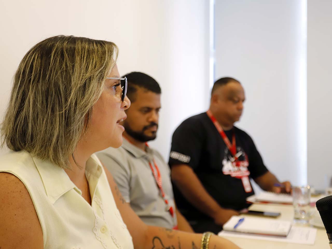 A conversa, na sede do sindicato, contou com a presença de Silvana Souza e Fábio Cruz, ambos diretores do SIEMACO-SP, e os representantes da empresa Sustentare: Aline Carvalho (gerente de desenvolvimento humano e organizacional), André Galizia (diretor de operações) e Emanuel Luiz (superintendente de operações). Também participaram Jânio Silva e Wanderson Baptista, do Departamento de Saúde e Segurança do Trabalho do SIEMACO-SP.