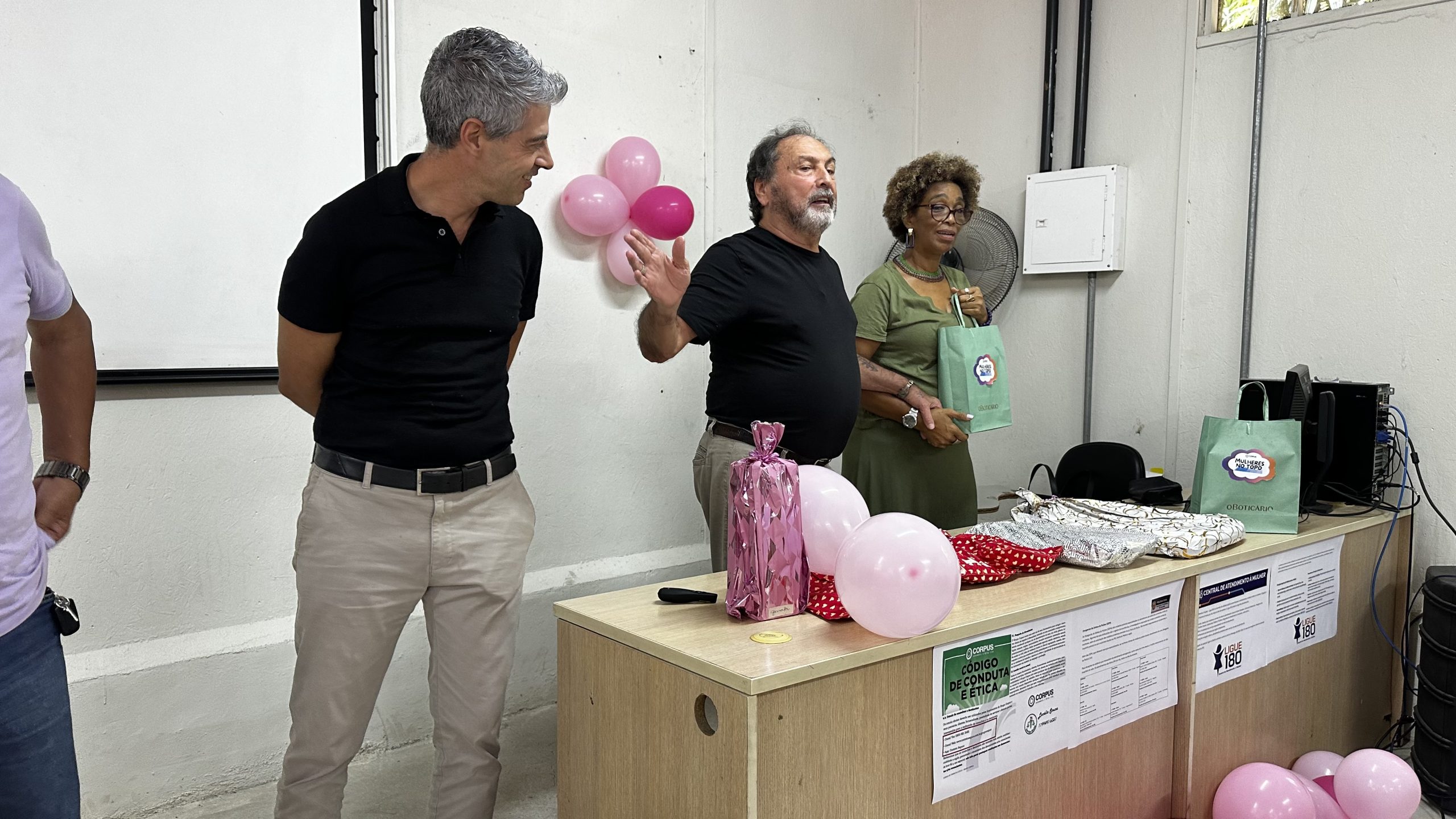 Os gerentes da empresa Corpus, Cláudio Oliveira, Fernando Almeida e André Yuri, também acompanharam as atividades, reforçando o apoio à iniciativa e a importância de ações voltadas ao bem-estar e valorização das trabalhadoras.
